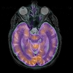 Click on sagittal image to select slice. Click on thin tickmark to change timepoint, or thick tickmark for overlay.
