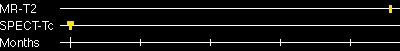 Click on sagittal image to select slice. Click on thin tickmark to change timepoint, or thick tickmark for overlay.