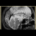 Click on sagittal image to select slice. Click on thin tickmark to change timepoint, or thick tickmark for overlay.