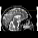 Click on sagittal image to select slice. Click on thin tickmark to change timepoint, or thick tickmark for overlay.