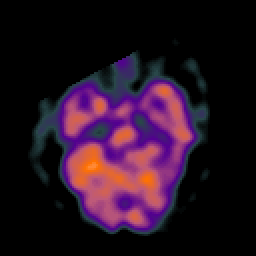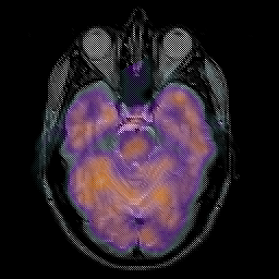 Click on sagittal image to select slice. Click on thin tickmark to change timepoint, or thick tickmark for overlay.