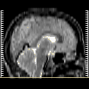 Click on sagittal image to select slice. Click on thin tickmark to change timepoint, or thick tickmark for overlay.