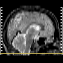 Click on sagittal image to select slice. Click on thin tickmark to change timepoint, or thick tickmark for overlay.