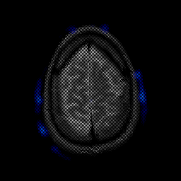 Click on sagittal image to select slice. Click on thin tickmark to change timepoint, or thick tickmark for overlay.
