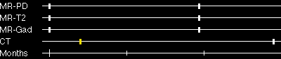Click on sagittal image to select slice. Click on thin tickmark to change timepoint, or thick tickmark for overlay.