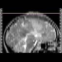 Click on sagittal image to select slice. Click on thin tickmark to change timepoint, or thick tickmark for overlay.