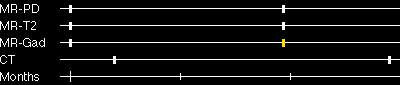Click on sagittal image to select slice. Click on thin tickmark to change timepoint, or thick tickmark for overlay.