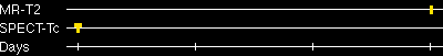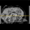 Click on sagittal image to select slice. Click on thin tickmark to change timepoint, or thick tickmark for overlay.
