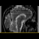 Click on sagittal image to select slice. Click on thin tickmark to change timepoint, or thick tickmark for overlay.