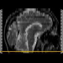 Click on sagittal image to select slice. Click on thin tickmark to change timepoint, or thick tickmark for overlay.