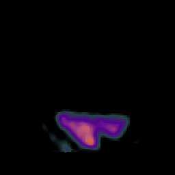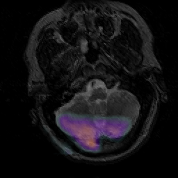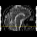 Click on sagittal image to select slice. Click on thin tickmark to change timepoint, or thick tickmark for overlay.