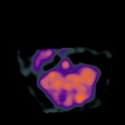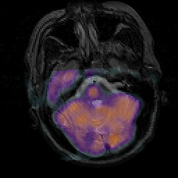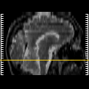 Click on sagittal image to select slice. Click on thin tickmark to change timepoint, or thick tickmark for overlay.