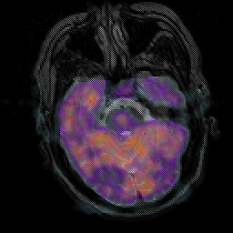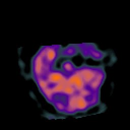 Click on sagittal image to select slice. Click on thin tickmark to change timepoint, or thick tickmark for overlay.