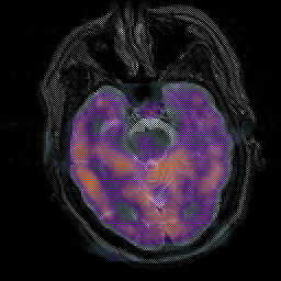 Click on sagittal image to select slice. Click on thin tickmark to change timepoint, or thick tickmark for overlay.
