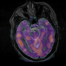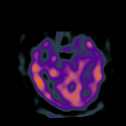 Click on sagittal image to select slice. Click on thin tickmark to change timepoint, or thick tickmark for overlay.