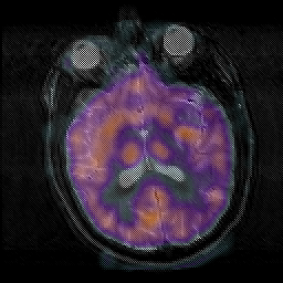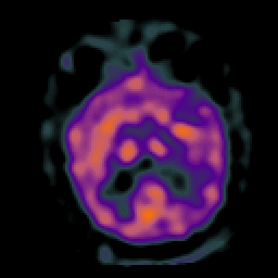 Click on sagittal image to select slice. Click on thin tickmark to change timepoint, or thick tickmark for overlay.