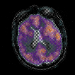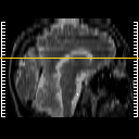 Click on sagittal image to select slice. Click on thin tickmark to change timepoint, or thick tickmark for overlay.