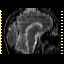 Click on sagittal image to select slice. Click on thin tickmark to change timepoint, or thick tickmark for overlay.
