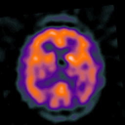 Click on sagittal image to select slice. Click on thin tickmark to change timepoint, or thick tickmark for overlay.