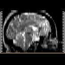Click on sagittal image to select slice. Click on thin tickmark to change timepoint, or thick tickmark for overlay.