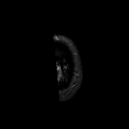 Click on sagittal image to select slice. Click on thin tickmark to change timepoint, or thick tickmark for overlay.