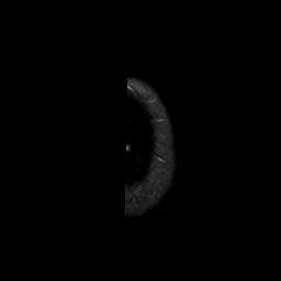 Click on sagittal image to select slice. Click on thin tickmark to change timepoint, or thick tickmark for overlay.