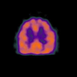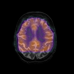 Click on sagittal image to select slice. Click on thin tickmark to change timepoint, or thick tickmark for overlay.