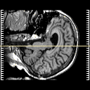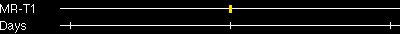 Click on sagittal image to select slice. Click on thin tickmark to change timepoint, or thick tickmark for overlay.
