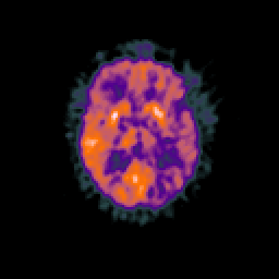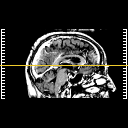 Click on sagittal image to select slice. Click on thin tickmark to change timepoint, or thick tickmark for overlay.