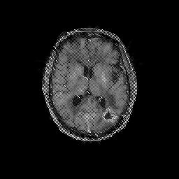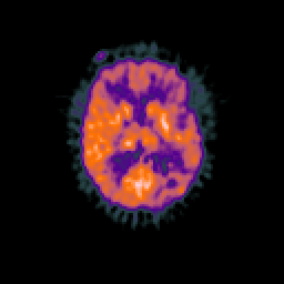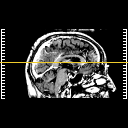 Click on sagittal image to select slice. Click on thin tickmark to change timepoint, or thick tickmark for overlay.