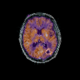 Click on sagittal image to select slice. Click on thin tickmark to change timepoint, or thick tickmark for overlay.