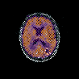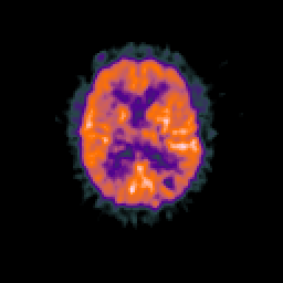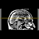 Click on sagittal image to select slice. Click on thin tickmark to change timepoint, or thick tickmark for overlay.