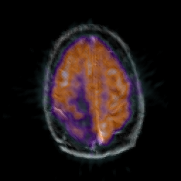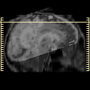 Click on sagittal image to select slice. Click on thin tickmark to change timepoint, or thick tickmark for overlay.