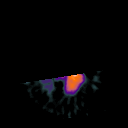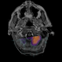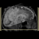 Click on sagittal image to select slice. Click on thin tickmark to change timepoint, or thick tickmark for overlay.