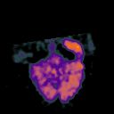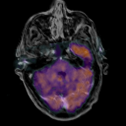 Click on sagittal image to select slice. Click on thin tickmark to change timepoint, or thick tickmark for overlay.